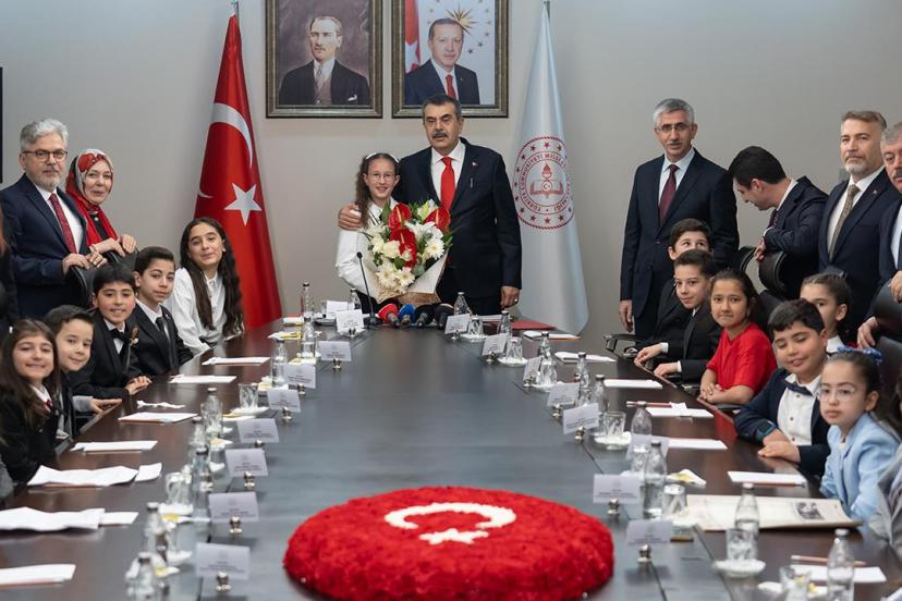 Milli Eğitim Bakanı Yusuf Tekin, 23 Nisan Ulusal Egemenlik ve Çocuk Bayramı dolayısıyla koltuğunu temsili olarak Etimesgut Cenk Yakın Ortaokulu öğrencisi 11 yaşındaki Defne Bayraktaroğlu'na devretti.