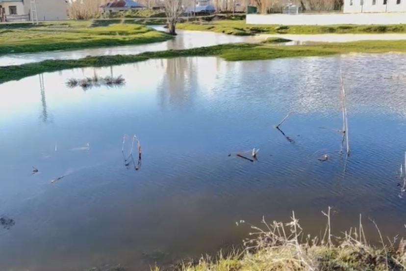 Cep telefonu kamerasına yansıyan görüntülerde, köyün bazı bölümlerinin su altında kaldığı, taşan suların yerleşim alanlarına doğru ilerlediği görüldü.