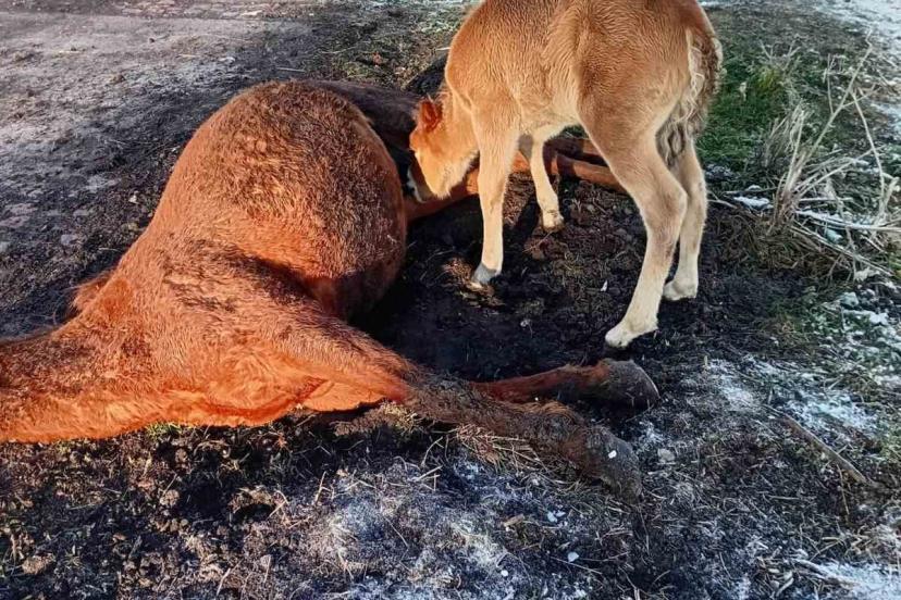 Edinilen bilgilere göre, Kura nehri kıyısında, etkili olan soğuk hava ve olumsuz doğa şartları nedeniyle güçten düşerek ölen at yanında yavrusuyla görüntülendi. Annesini kaybeden tay ise uzun süre onun yanından ayrılmadı.