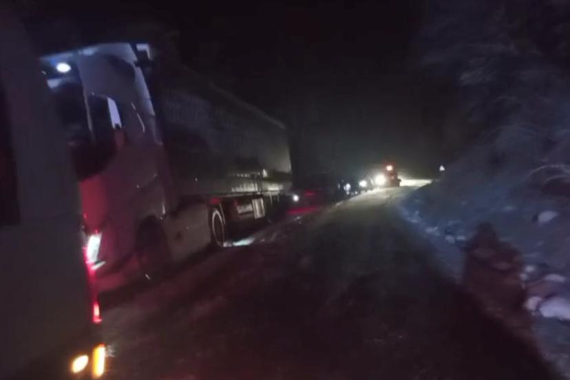 Olay, Sahara Geçidi’nin zirve noktasında meydana geldi. Alınan bilgiye göre, kaygan zemin nedeniyle kontrolden çıkan tır, kayarak yolu trafiğe kapattı. Tırın yolu kapatmasıyla birlikte her iki yönde trafik durma noktasına geldi. Bölgede mahsur kalan Adem Kaya, o anları anlatarak cep telefonuyla kaydetti.