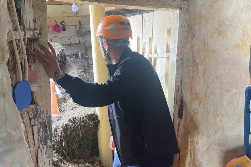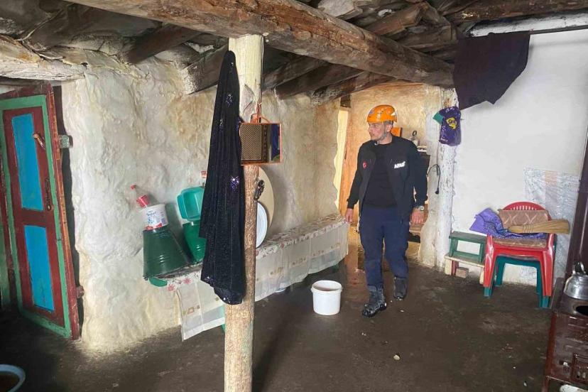 Aşırı yağış nedeniyle toprak damlı evde göçük