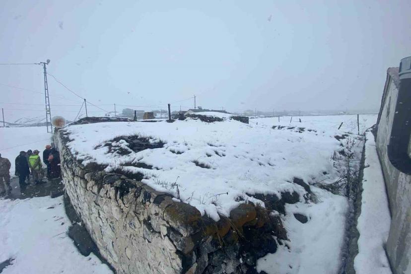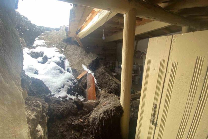 Ardahan’da kar ve yağmurun etkisiyle toprak damlı bir evde göçük meydana geldi.