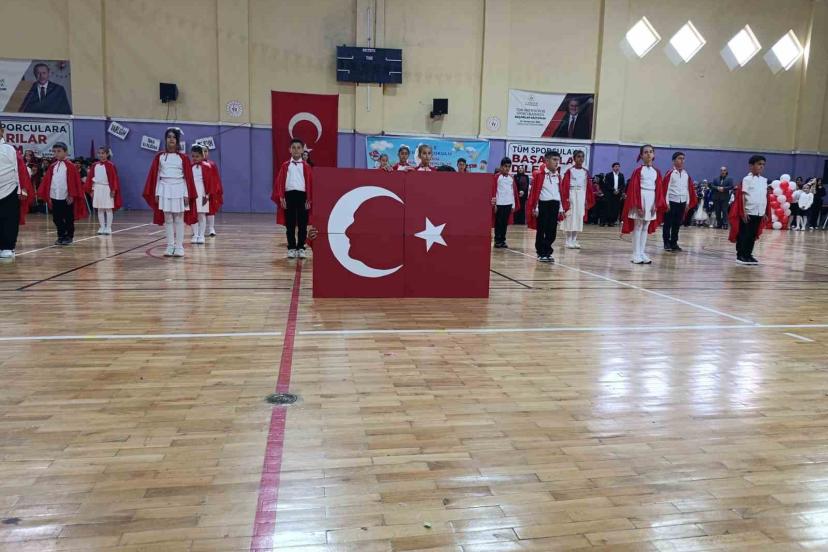Resmi törenin ardından kutlama programı, Aşkale Gençlik ve Spor İlçe Müdürlüğü Kapalı Spor Salonu’nda devam etti. Buradaki program da saygı duruşu ve İstiklal Marşı’nın okunmasıyla başladı.