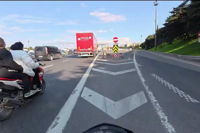 Ataşehir TEM Otoyolu'nda seyir halindeki motosiklet sürücüsü, arkasında oturan kadının saçını çekti. Motosikletteki kadın kavga sırasında dengesini kaybetti.