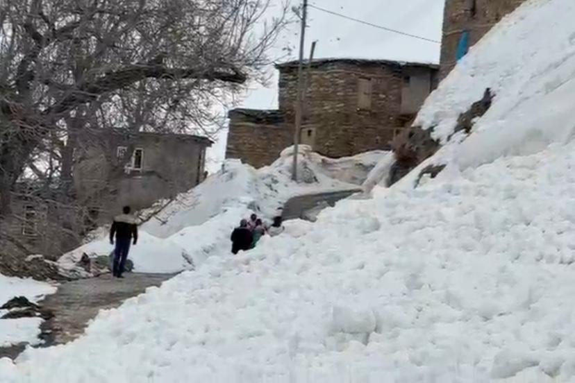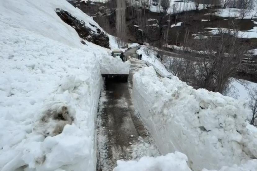 Bahçesaray’da, etkili olan yoğun kar yağışının ardından Çatbayır Mahallesi yoluna çığ düştü.