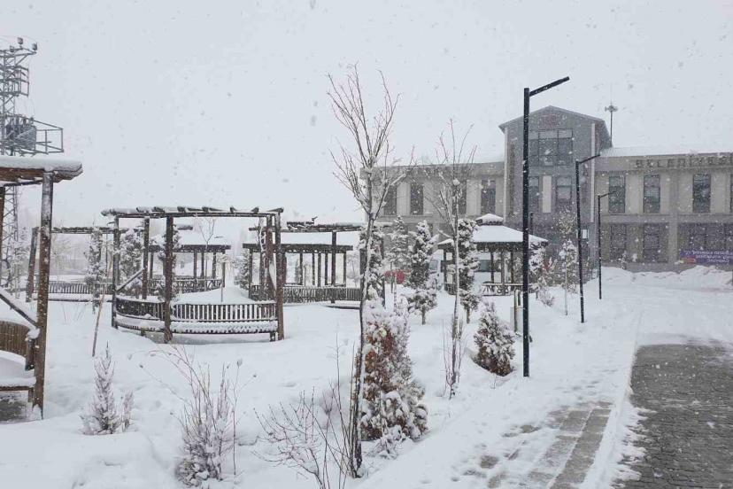 Van’ın Başkale ilçesinde etkili olan kar yağışı nedeniyle her yer beyaza büründü.