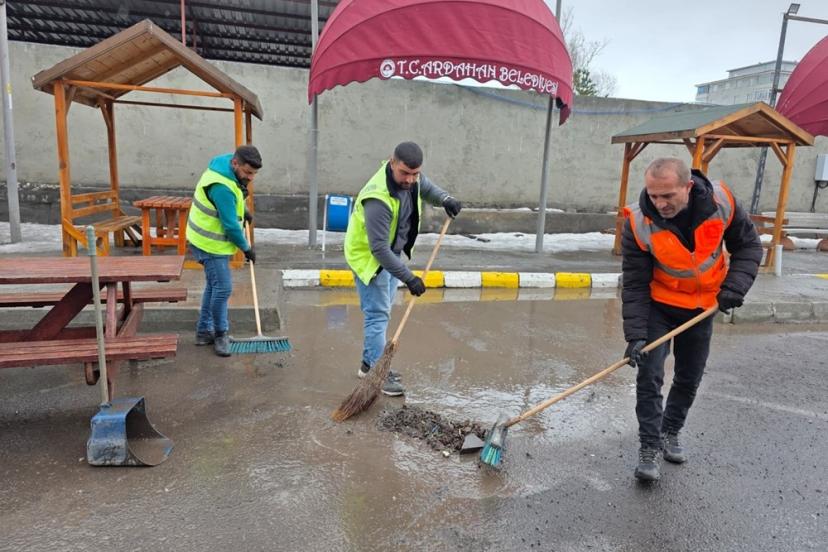 Ardahan Belediyesi ekiplerinin başlattığı bahar temizliği çalışmaları, kar yağışları sonrası yeniden başladı.