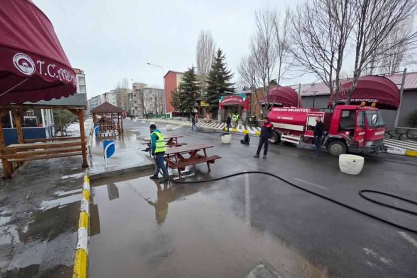 Ardahan Belediyesi ekiplerinin başlattığı bahar temizliği çalışmaları, kar yağışları sonrası yeniden başladı. Ekipler, cadde ve sokaklarda hummalı bir çalışma yürütüyor.
