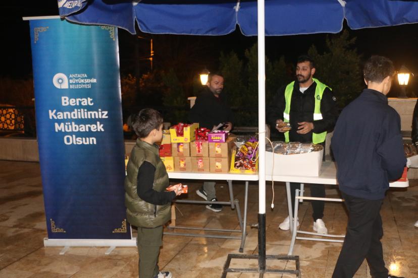 ANTALYA Büyükşehir Belediyesi, Berat Kandili vesilesiyle kent genelindeki 19 ilçede kent sakinlerine lokma ve kandil simidi dağıttı. Muratpaşa ve Kepez ilçelerinde kurulan mobil ikram noktalarında sıcak lokma sunulurken, diğer ilçelerde ise kandil simidi ikram edildi.