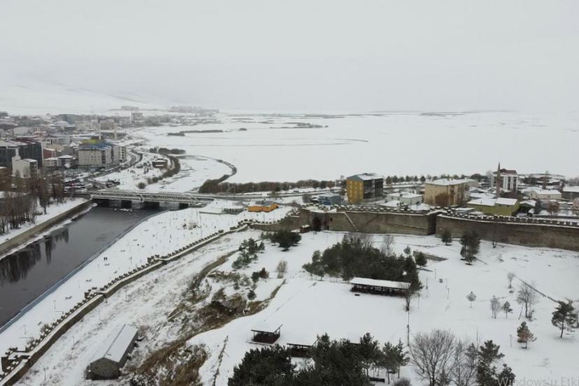 Beyaza bürünen Ardahan Kalesi havadan görüntülendi
