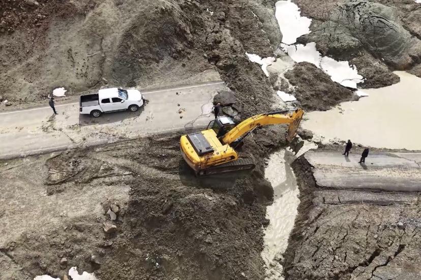 Bingöl’de heyelan sonucu çöken ve kayan yolda çalışmalar başladı