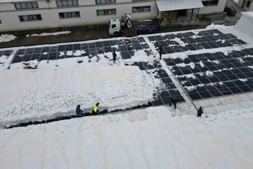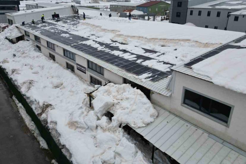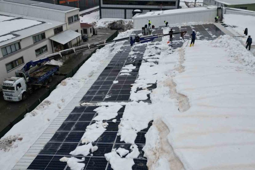 Vinç, ucundaki özel aparat, adeta bir iş makinesinin kepçesi gibi çalışarak tonlarca karı güvenli bir şekilde aşağı indiriyor. Bu yöntemle hem iş güvenliği sağlanıyor hem de geniş alanlarda temizlik hızlı bir şekilde tamamlanabiliyor. Tekstil firması yetkilisi Maşallah Sarı, uzun uğraşlar sonucunda insan gücü ile temizlenemeyecek olan karları özel bir vinç ve aparatla 2 günde temizlediklerini belirterek, "Bu seneki yoğun kar yağışından dolayı çatı temizliğini insan gücüyle yapamadık. Bu sebeple yeni bulmuş olduğumuz vincimizin ağzına bir aparat sistemi taktık. Ortalama şu anki kar kütlesi 1,5-2 metre. İnsan gücünü aştığından dolayı vinç ağzına bir aparatla buradaki karı temizledik. Tabii ki buradaki karı temizlerken güneş panellerinin zarar görmemesi açısından uç kısımlarına güçlü bir plastik mekanizma taktık. Şu an mevcut olan güneş panellerimizin zaten tamamı zarar görmüş durumda. Kar yağışından dolayı bu ikinci temizliğimizdir. Umarım bundan sonraki dönemde de kar yağışı bu kadar etkili ve zarar görecek bir düzeyde olmaz" dedi.