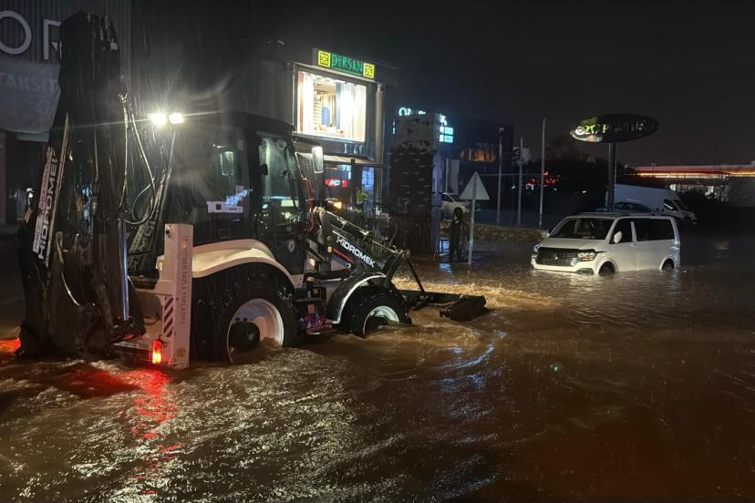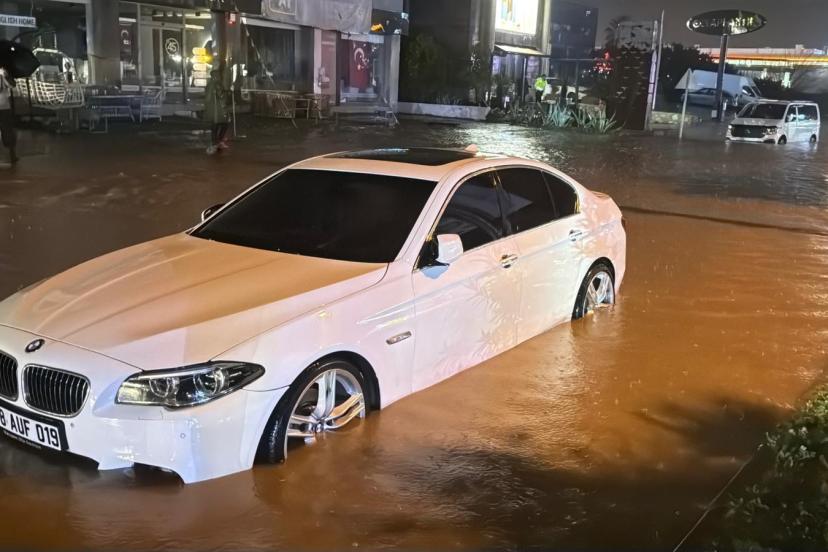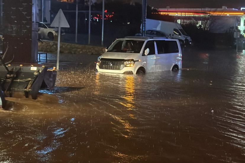 MUĞLA’nın Bodrum ilçesinde, etkili olan sağanak yağmur nedeniyle yol trafiğe kapandı, 2 araç sel sularında kaldı.