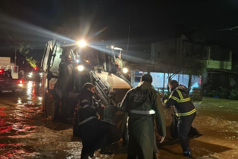 ÇOK SAYIDA EV VE İŞ YERİNİ SU BASTI Ekiplerin yoğun uğraşları sonrası Konacık- Bitez arasında sel suları nedeniyle kapanan yol yeniden trafiğe açıldı.