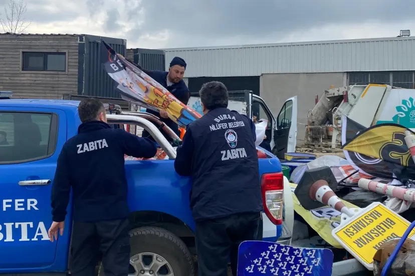 Bursa Nilüfer Belediyesi kent estetiğini bozan, yaya geçişini engelleyen, görüntü ve çevre kirliliği oluşturan tabelalarla ilgili çalışma gerçekleştirdi.