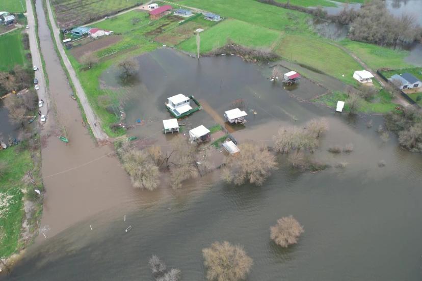 Bursa'da Ulubat Gölü'nün taşmasıyla göle komşu Akçalar Mahallesi'nde onlarca tiny house ve hobi evi sular altında kaldı.