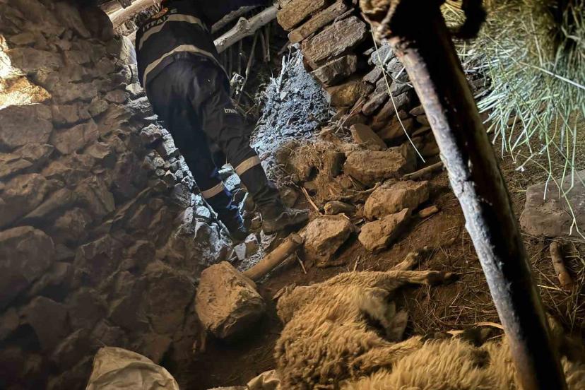 Van’ın Çatak ilçesinde ahır çökmesi sonucu 50 kuzu göçük altında kaldı.