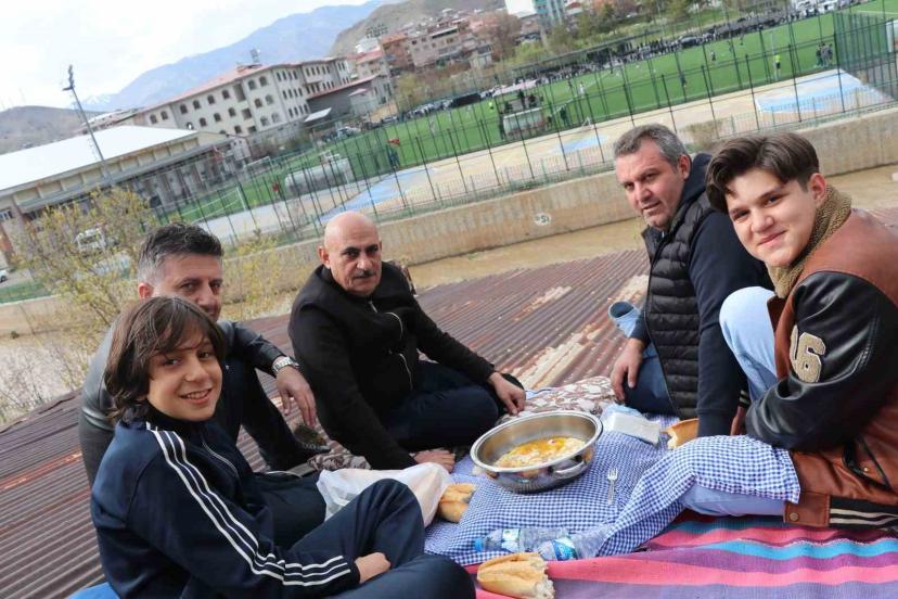 Erzurum’un Oltu ilçesinde bir grup vatandaş, Play-Off heyecanını farklı bir ortamda yaşadı. Evlerinin çatısına çıkan Oltulular, yumurta kayganası yiyerek takımlarının maçını izleyip destek verdi.