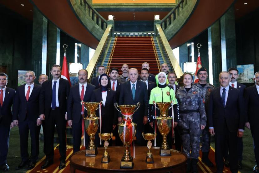 Türk Polis Teşkilatı'nın 181. kuruluş yıl dönümü dolayısıyla yapılan karşılamada, Cumhurbaşkanlığında farklı birimlerde görev yapan polisler ile çeşitli spor branşlarında başarı elde eden polisler de yer aldı.