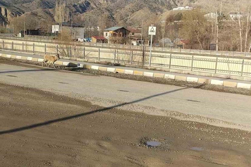 Erzurum’un Uzundere ilçesinde sabah saatlerinde ilçe merkezine kadar inen dağ keçisi, işe gitmek için evlerinden çıkan vatand...