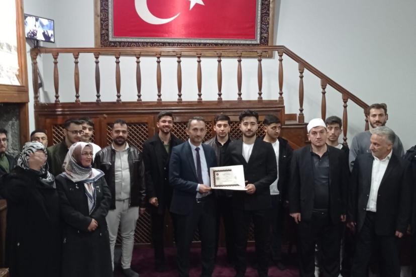 Ziyaret kapsamında, hafızlığını tamamlayan bir öğrenci belge takdim töreni düzenlendi. Genç hafıza Hafızlık Belgesi’ni bizzat takdim eden Dr. Sebahattin Erdoğan, hafızlığın sadece bir ezber değil, bir ömür boyu taşınacak mukaddes bir emanet olduğunu vurguladı.