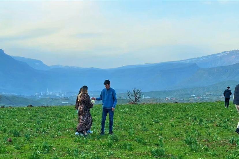 Hakkari merkez ve bazı ilçelerinde kar ve yağmur etkisini sürdürürken, Irak sınırında yer alan Derecik ilçesi adeta baharı yaşıyor.