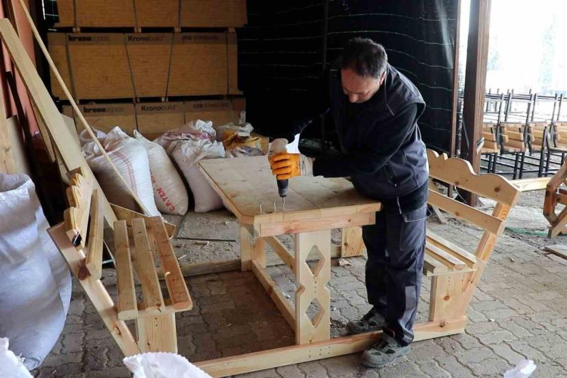 Parklar, yaşam alanları ve yeşil alanlarda kullanılan ekipmanların bakım ve onarımları titizlikle gerçekleştirilirken, oturma bankları, kamelyalar, pergoleler ve piknik masaları da Elazığ Belediyesi’nin kendi imkanlarıyla üretiliyor.