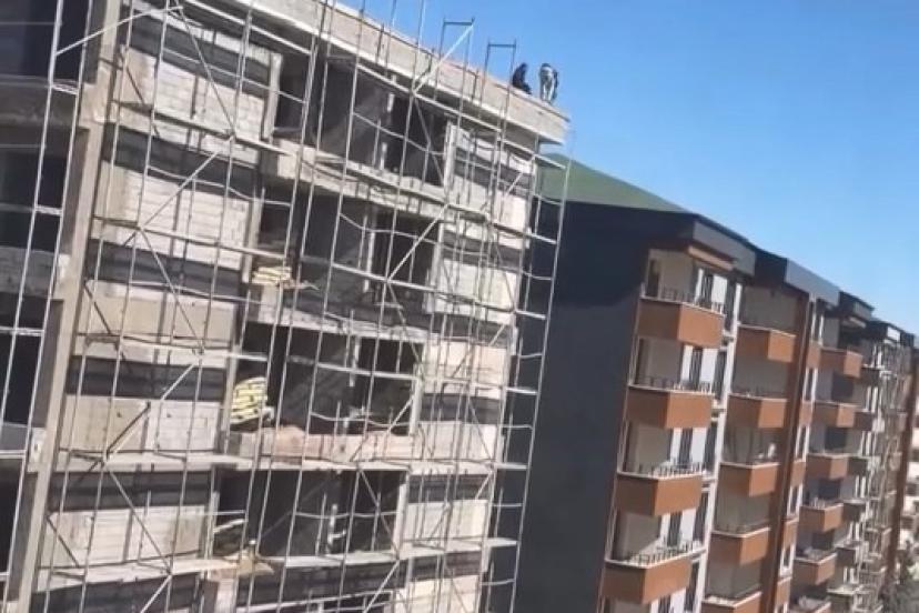 Olay, merkez Sürsürü Mahallesi’nde bulunan 10 katlı inşaat halindeki bir binanın çatı kısmında yaşandı. Çatıda çalışma gerçekleştiren işçilerin, herhangi bir önlem almadan iş yaptığı görüldü. İşçiler, canını hiçe sayarak uzunca bir süre çalıştı. O anlar ise bir vatandaşın cep telefonu kamerasına yansıdı.