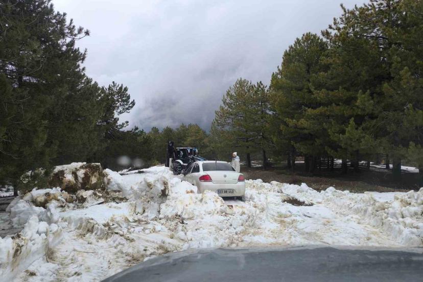 Elazığ’da karda mahsur kalan otomobil kurtarıldı
