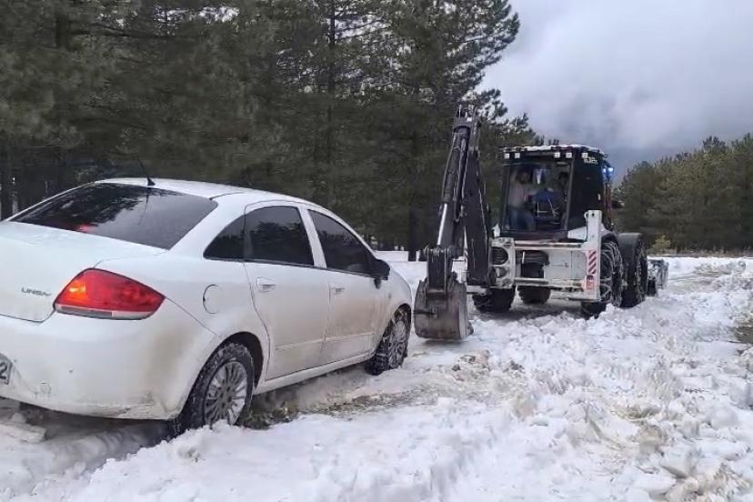 Kurtarma çalışmasının ardından sürücü güvenli bir şekilde yoluna devam ederken, ekipler bölgede karla mücadele çalışmalarını sürdürdü.