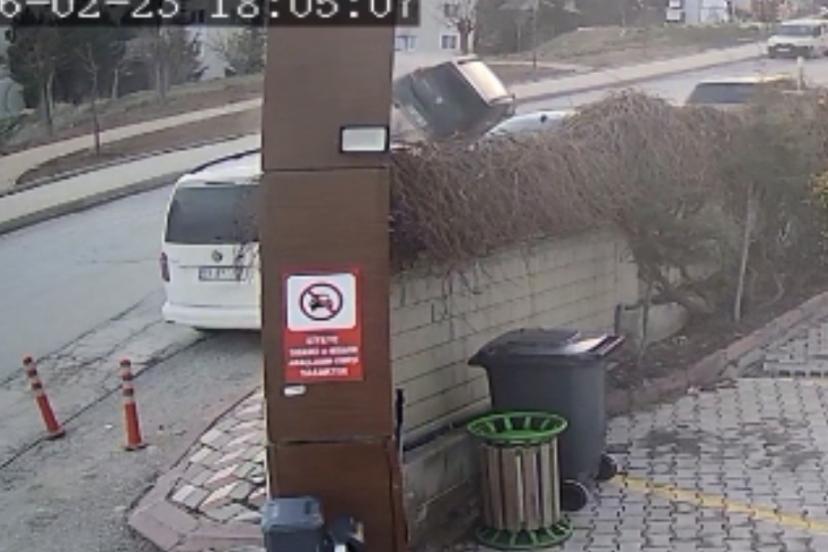 Kaza anı bir iş yerinin güvenlik kamerası tarafından saniye saniye kaydedildi. Görüntülerde otomobillerin çarpıştığı ve bir aracın ters döndüğü anlar yer aldı.