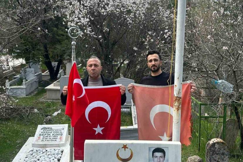 Elazığ’da şehitlerin kabirlerinde solmuş ve deforme olmuş bayraklar yenileriyle değiştirildi.