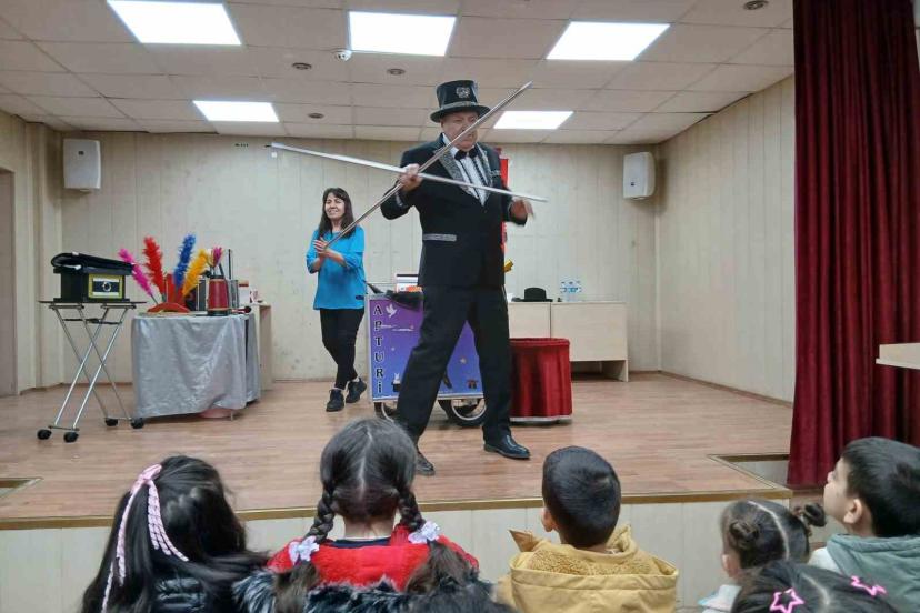 Emekli polis memuru memleketinde öğrencilere sihirbaz gösterisiyle unutulmaz anlar yaşattı
