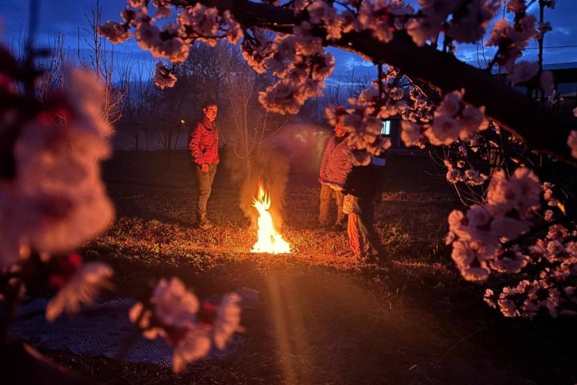 Baharın gelişiyle birlikte kayısı başta olmak üzere elma, kiraz ve diğer meyve ağaçlarının çiçek açtığı kentte, ani sıcaklık düşüşleri üreticileri endişelendiriyor. Gece boyunca bahçelerinde nöbet tutan çiftçiler, farklı noktalarda kontrollü ateşler yakarak oluşan ısı ve duman sayesinde ağaçların zarar görmesini önlemeye çalışıyor.