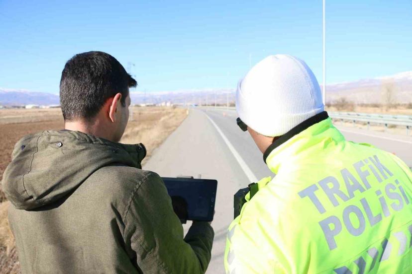 Erzincan’da polis ekipleri, trafik kazalarını azaltmak ve sürücülerin trafik kurallarına uyma alışkanlığını artırmak amacıyla drone destekli denetim gerçekleştirdi.