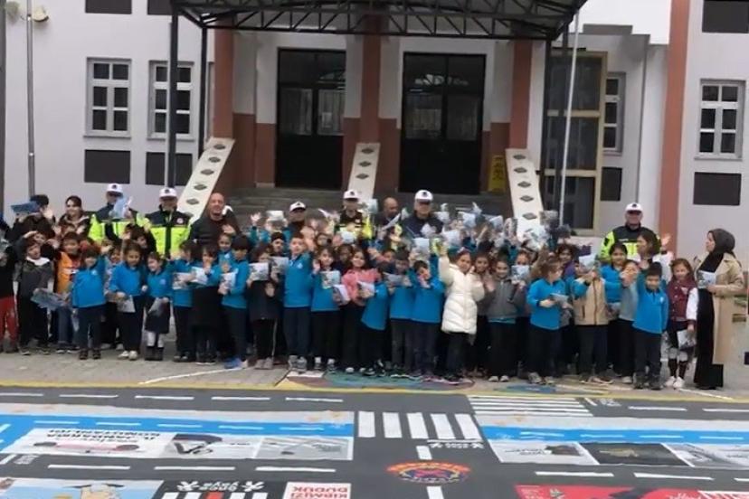 Merkez ilçe trafik timleri tarafından Şehit Pilot Teğmen Serkan Sağır İlkokulu’nda 120 öğrenciye trafik kuralları, karşıdan karşıya geçiş, emniyet kemeri kullanımı ile yaya ve okul geçitlerinin önemi konularında eğitim verildi.