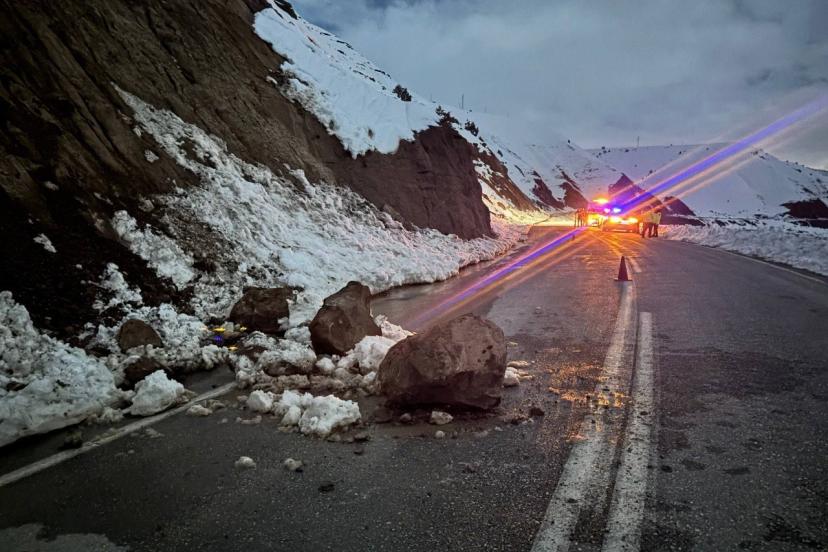 Kaya parçalarının yoldan kaldırılmasının ardından ulaşım kontrollü olarak sağlandı.