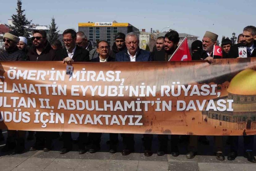 Erzurum Sivil Toplum Platformu üyeleri, Kudüs ve Aksa’nın özgürlüğü için yürüdü