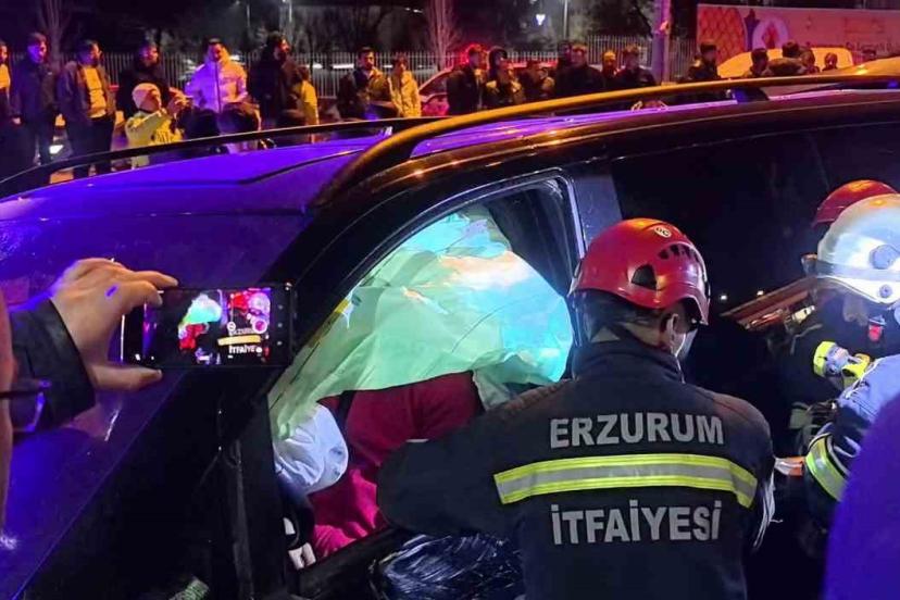 Erzurum’da feci kaza: Kavşak adeta savaş alanına döndü
