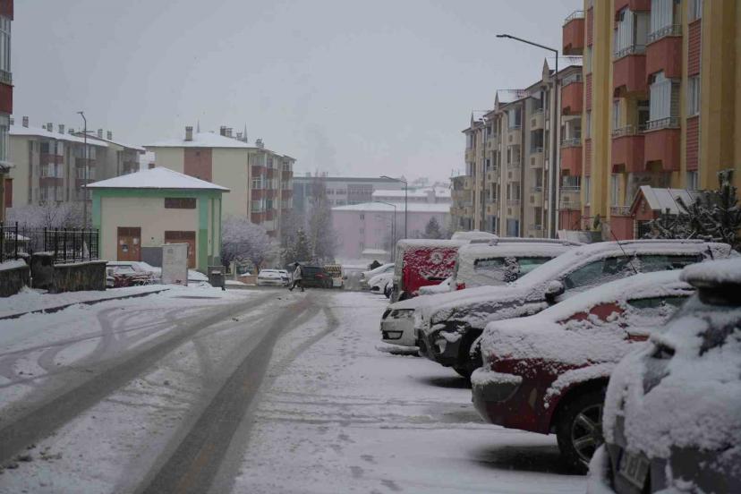 Erzurum’da bir yandan sıcaklık artarken bir yandan da kar yağışı devam ediyor.