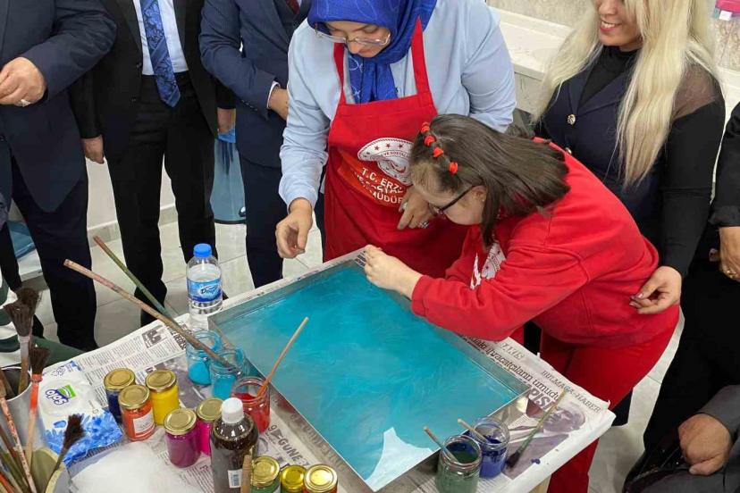 Erzurum Aile ve Sosyal Hizmetler İl Müdürlüğü tarafından Aziziye Engelli Aktif Yaşam Merkezi’nde düzenlenen programda, otizmli bireyler okuma-yazma ve müzik atölyelerinin yanı sıra resim, çini ve boyama etkinliklerine katıldı. Etkinlik boyunca renkli ve anlamlı görüntüler oluşurken, çocuklar otizmi simgeleyen boyalı tabaklara ellerini batırarak hazırlanan panoya el izlerini bıraktı.