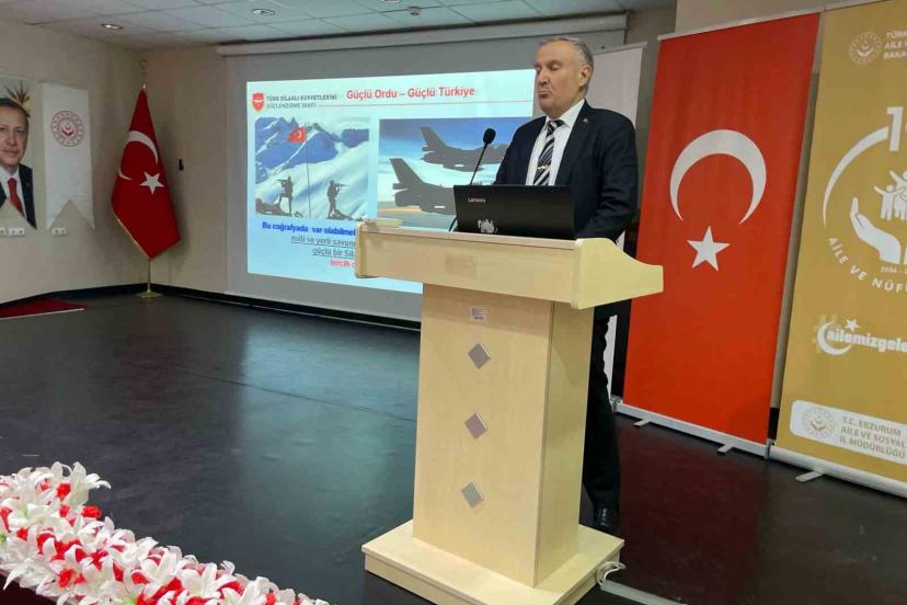 Erzurum Aile ve Sosyal Hizmetler İl Müdürlüğü konferans salonunda düzenlenen programda, savunma sanayinde gelinen nokta, Türk Silahlı Kuvvetlerinin caydırıcı gücü ve Türk Silahlı Kuvvetlerini Güçlendirme Vakfı’nın faaliyetleri katılımcılarla paylaşıldı.