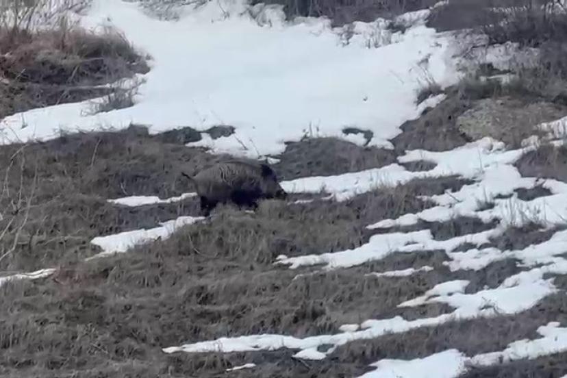 Edinilen bilgilere göre, sürüsünden ayrılan yavru domuz, yeniden ailesine kavuşabilmek için sürüsünün ayak izlerini takip etmeye çalıştı. Zaman zaman durarak iz süren yavrunun, ardından yeniden ilerlediği görüldü.