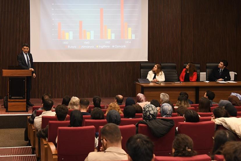 Edebiyat Fakültesi Öğretim Üyesi Doç. Dr. Mehmed Gökhan Polatoğlu ise "Cumhuriyet Döneminde Sağlık Alanında Öncü Yüzler" başlıklı sunumunda Cumhuriyet’in ilk yıllarından itibaren sağlık alanında önemli çalışmalar gerçekleştiren hekimler ve bilim insanlarının katkılarını ele alarak, Türkiye’de modern sağlık sisteminin gelişim sürecine öncülük eden isimleri ve bu isimlerin sağlık politikalarına olan etkilerini değerlendirdi.