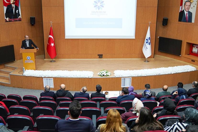Törende konuşan Rektör Prof. Dr. Bülent Çakmak, proje kültürünün önemine dikkat çekerek: "Üniversiteler eğitim öğretim, araştırma ve toplumsal katkı olmak üzere üç temel sac ayağı üzerine inşa edilmektedir. Araştırma ile proje üretme kültürü üniversitelerin bilimsel kimliğini doğrudan güçlendirmektedir. Erzurum Teknik Üniversitesi olarak kuruluşumuzdan bu yana proje kültürünün gelişmesine büyük önem veriyoruz ve akademisyenlerimizin ulusal ve uluslararası düzeyde elde ettiği proje destekleri bu yaklaşımın somut bir göstergesidir. Uluslararası projeler üniversitelerin araştırma kapasitesi ve akademik görünürlüğü açısından önemli katkılar sunuyor. Özellikle Avrupa Birliği destekli projelerin artması üniversitemizin bilimsel iş birliklerini daha da güçlendiriyor. Bu vesileyle 2024-2025 yıllarında geliştirdikleri projelerle Avrupa Birliği ve TÜBİTAK tarafından desteklenmeye hak kazanan akademisyenlerimizi gönülden kutluyor, başarılarının devamını diliyorum" ifadelerini kullandı.