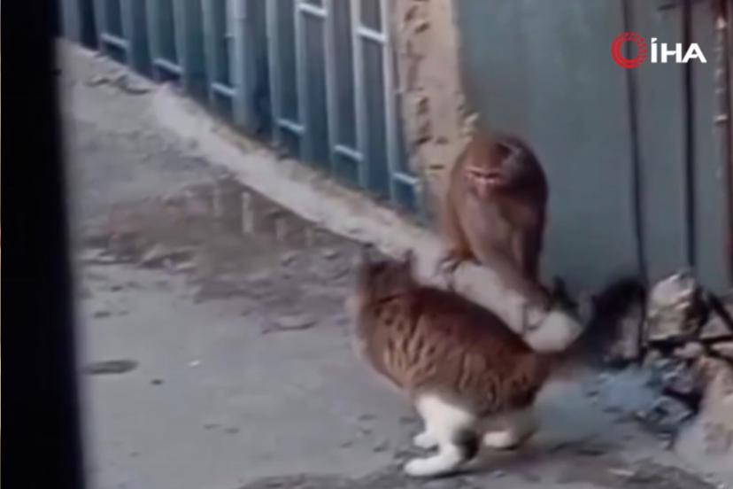 İstanbul'da Rhesus Makak türü maymun, tutulduğu iş yerinden kaçtı. Sokakta bir kediyle karşılaşıp, çatılara tırmanan maymun, ekipler tarafından yakalandı.
