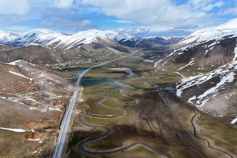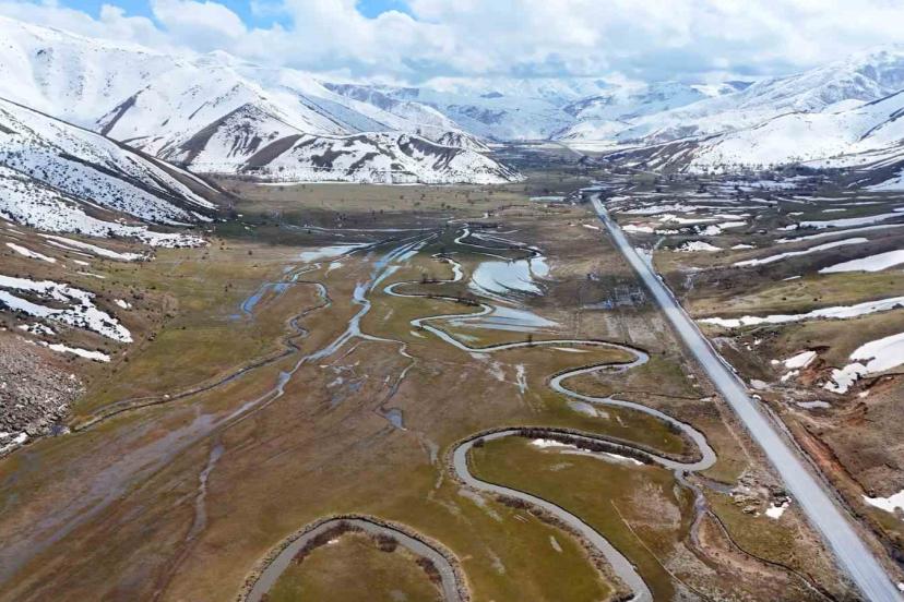 Bitlis’in Tatvan ile Hizan ilçeleri arasında bulunan Güzeldere Vadisi’nde uzayıp giden Güzeldere menderesleri havadan görüntülendi.