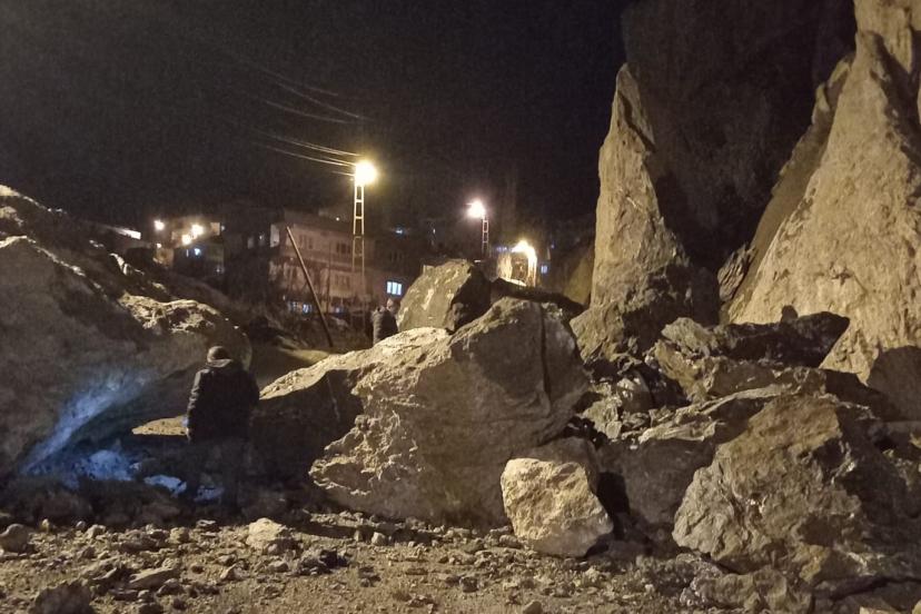 Hakkari’de yoğun kar yağışı ve ardından etkili olan sağanak nedeniyle yamaçtan kopan dev kayalar, Biçer Mahallesi Selim Atay Köprüsü yakınlarında düştü. İhbar üzerine bölgeye polis, Afet ve Acil Durum (AFAD) Müdürlüğü ile belediye ekipleri sevk edildi. Olayda can ve mal kaybı yaşanmadığı öğrenildi. Yolu kapatan kayaların kaldırılması için belediye ekiplerince çalışma başlatıldı.