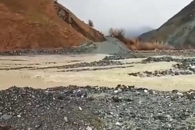 Elazığ’ın Palu ilçesine bağlı Gökdere köyünde şiddetli yağışlar sonucu meydana gelen selde, heyelan nedeniyle açılan alternatif yol sular altında kaldı