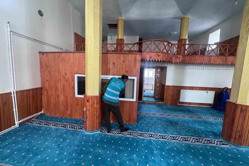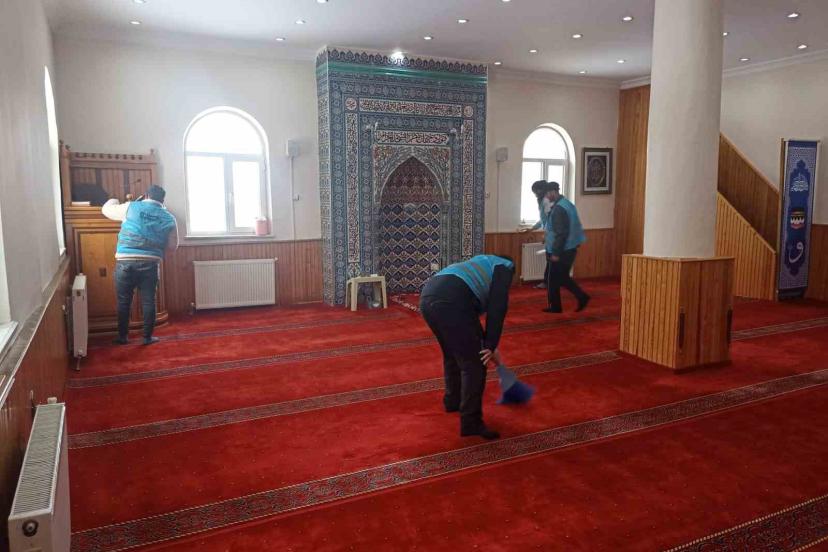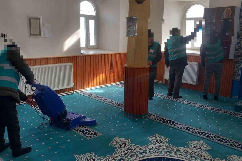 Erzurum’un Hınıs ilçesinde denetimi serbestlik uygulaması çerçevesinde yükümlüler tarafından camilerde temizlik çalışması yapıldı.